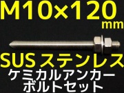 ケミカルボルト アンカーボルト ステンレス SUS M10×120mm 寸切ボルト1本 ナット2個 ワッシャー1個 Vカット 両面カット SUS304 ステンアンカーボルト「1度のご注文で200個(本)迄」「取寄せ品」