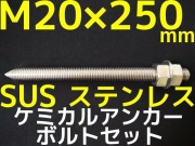 ケミカルボルト アンカーボルト ステンレス SUS M20×250mm 寸切ボルト1本 ナット2個 ワッシャー1個 Vカット 両面カット SUS304 ステンアンカーボルト ケミカルボルト「1度のご注文で25個(本)迄」「取寄せ品」