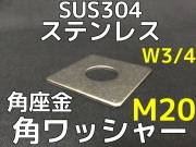 ステンレス 角ワッシャー M20 W3/4 6分(ろくぶ) SUS304 ステン角ワッシャー ステンレス角型ワッシャー 「取寄せ品」「サイズ交換/キャンセル不可」